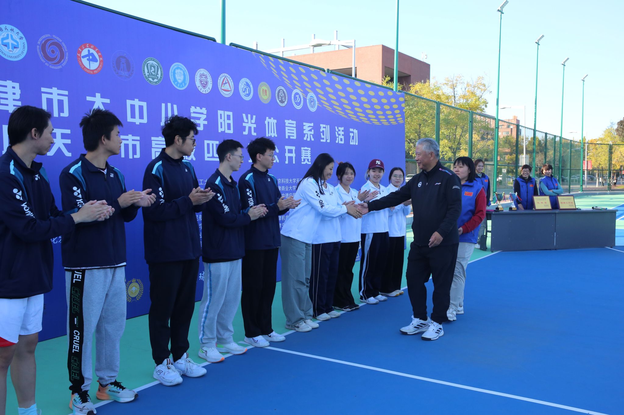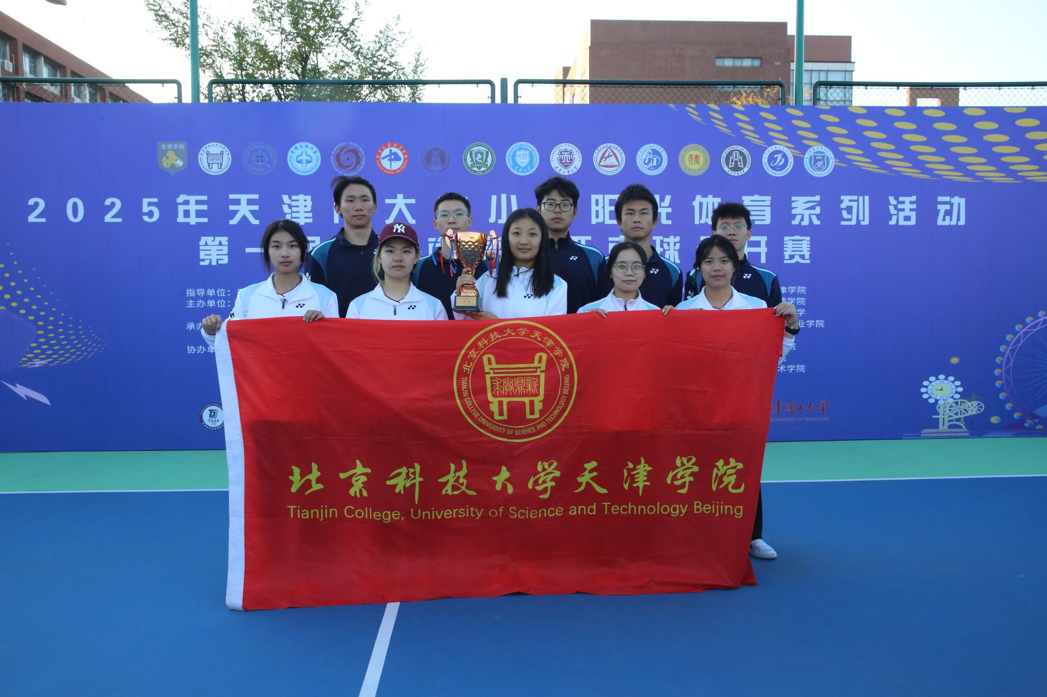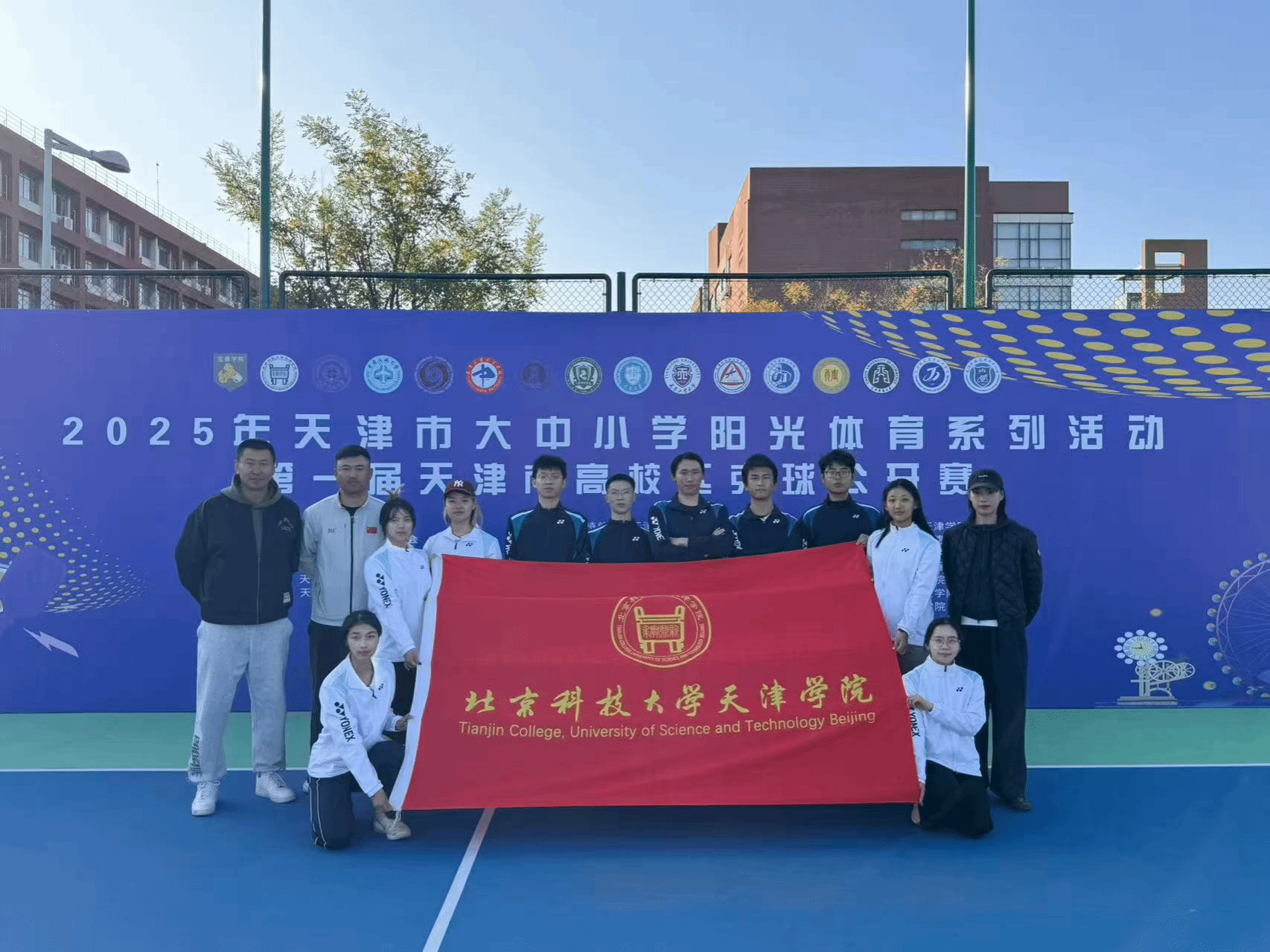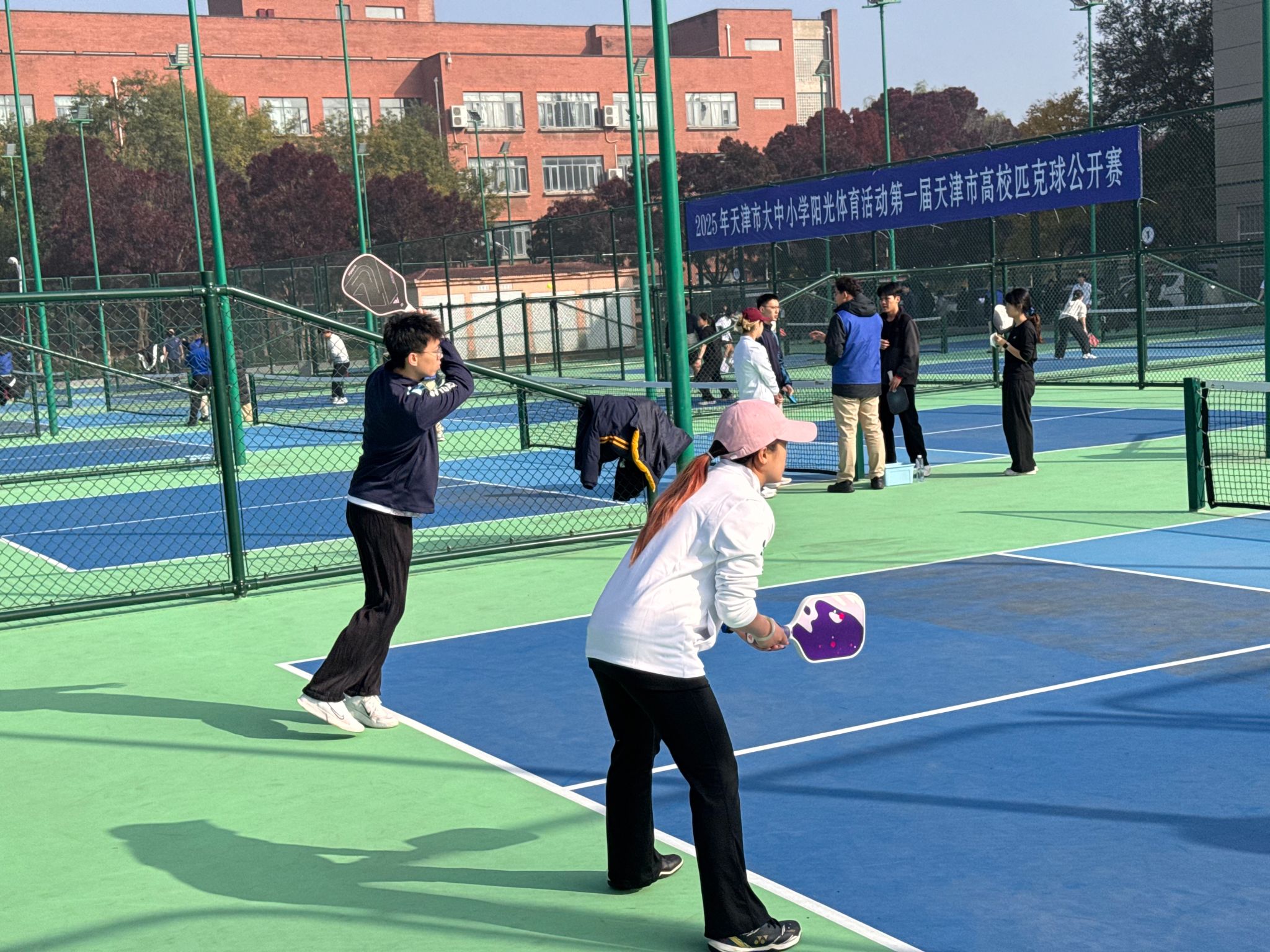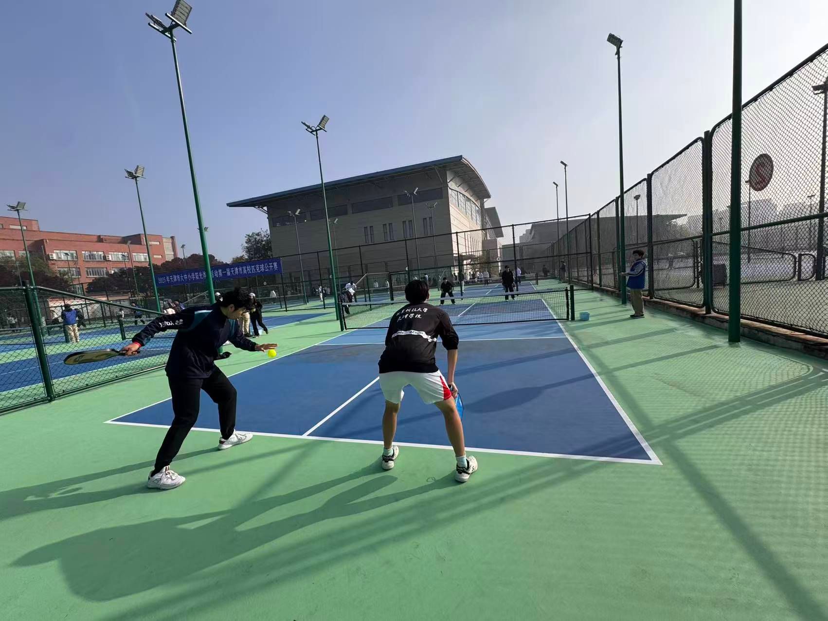 2025年11月1日,由天津市教育委员会、天津市学生体育联合会和天津市匹克球运动协会共同举办的2025年第一届天津市高校匹克球公开赛在天津理工大学匹克球场激烈开打,本次赛事吸引了全市17所高校,共计200余名运动员、教练员和领队踊跃参与。我院由体育部赵文男、杨永康、程旸三位老师任教练员和10名球员组队参赛,经过激烈角逐,我校匹克球队获得天津市高校团体第三名(季军)。