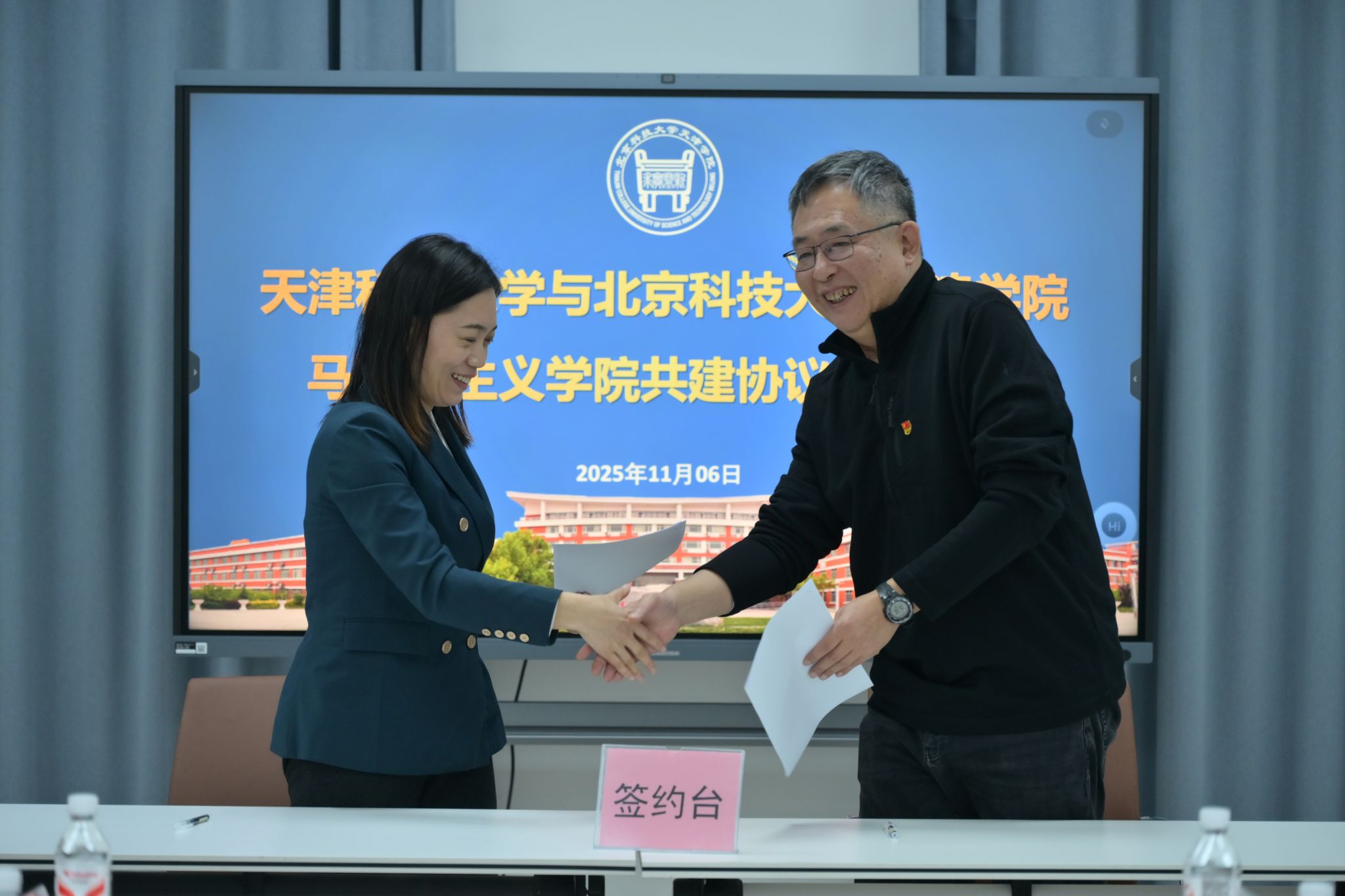 天津科技大学马克思主义学院副院长闫翠娟、我院马克思主义学院院长陈弘签署结对共建协议。