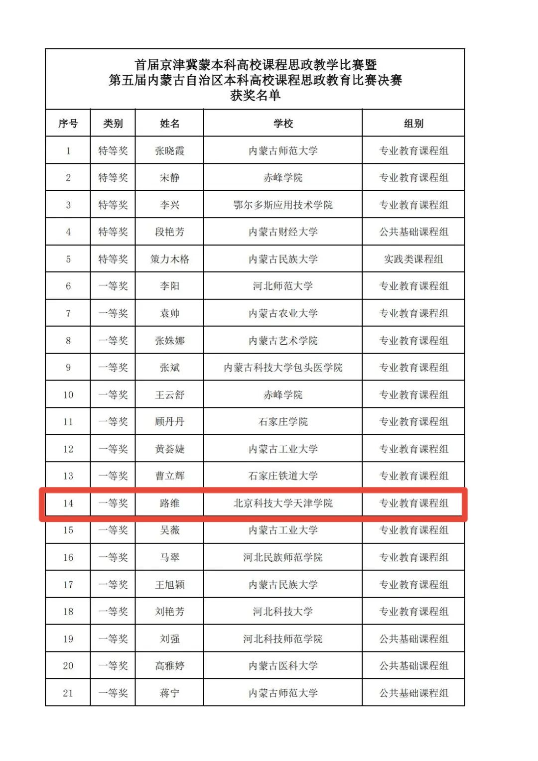 【喜报】我院路维老师荣获首届京津冀蒙本科高校课程思政教学比赛决赛一等奖!