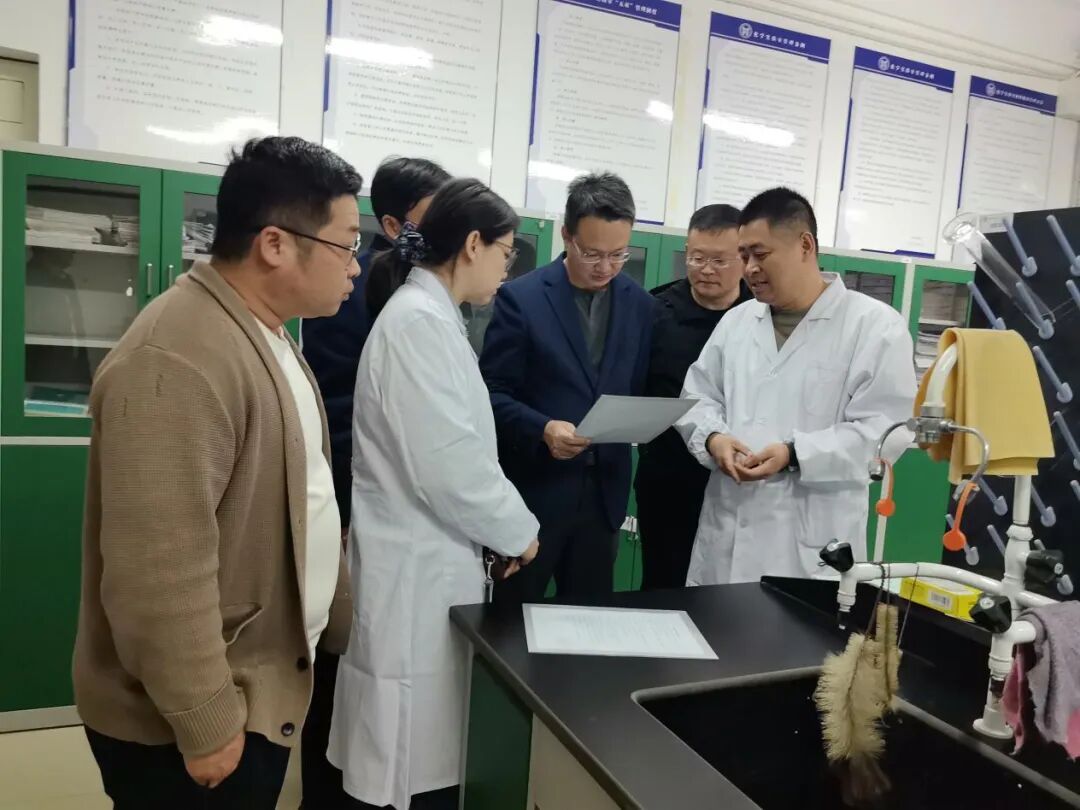 检查过程中,学院领导严格对照安全管理规范,聚焦危险化学品采购登记、规范使用、分类收集、规范暂存及合规处理等关键环节,通过实地查看、现场询问、资料查阅等方式,对实验室危化品存储条件、管理制度落实、安全防护设施配备、应急处置预案等内容进行全面细致检查。