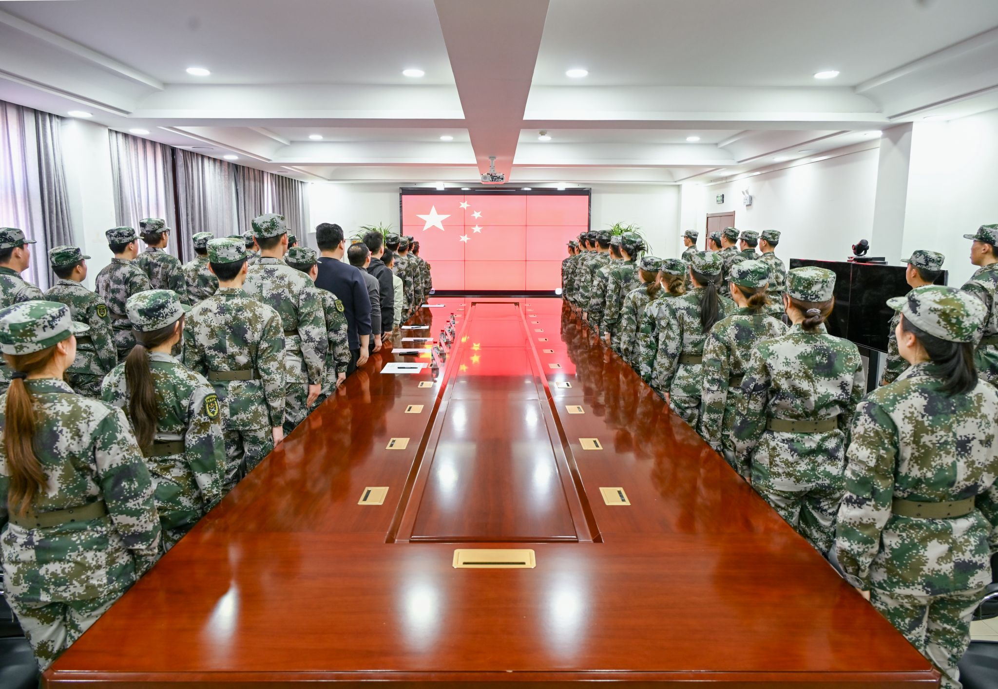 授旗仪式上,周少华副部长为国旗护卫队授旗。鲜红队旗承载使命与荣誉,象征责任与担当,全体队员以庄重姿态迎接队旗,坚定守护国旗的信念与决心。国旗护卫队队长米亚军带领全体队员庄严宣誓。誓言铿锵有力,彰显了队员们护卫国旗、践行使命的决心与担当。