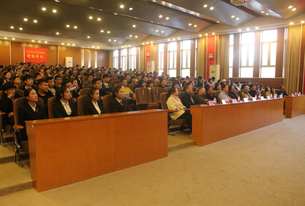 大会在一段参赛精彩视频集锦拉开了帷幕,视频是对我院在第十三届“恩智浦”杯全国大学生智能汽车大赛精彩瞬间进行回顾。车队成员代表马山林同学发言,他总结了在积极备战竞赛的一年里的学习和经历,并分享了参赛的经验和感受,同时感谢学院领导的支持、指导老师的答疑解惑和队员的辛苦付出,并做出争取2019年冲进国赛的承诺。