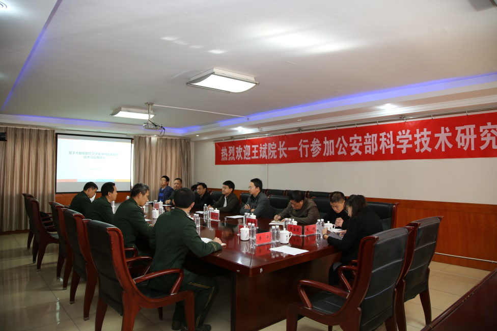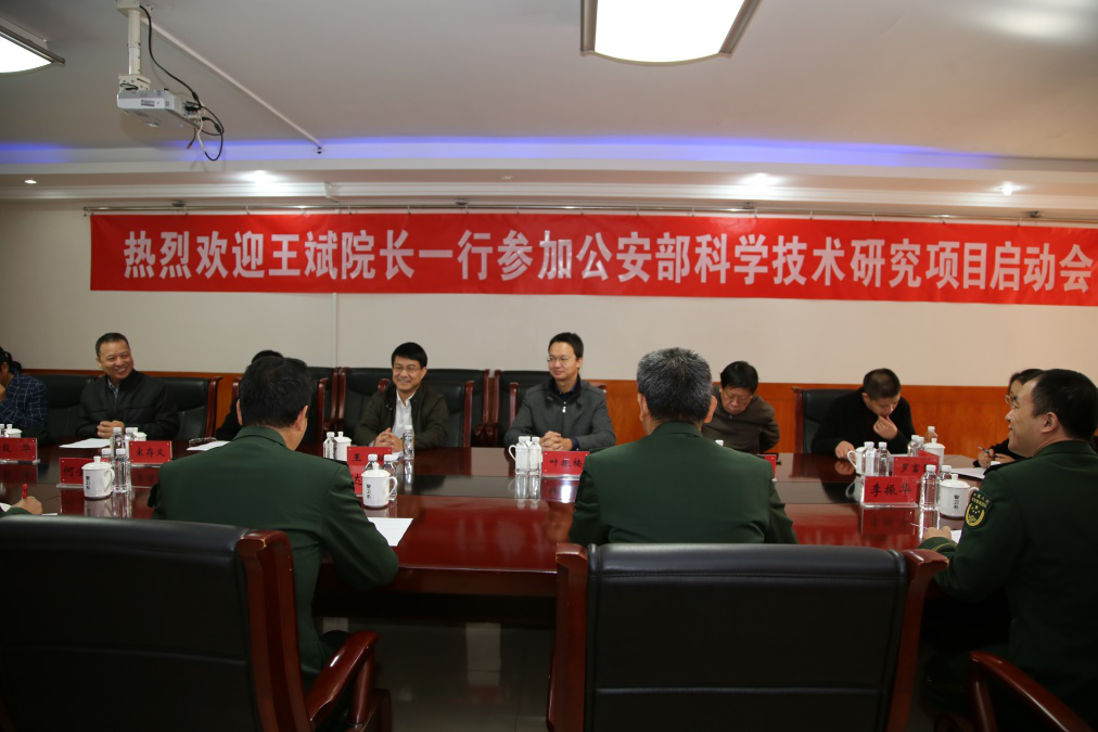 在中国人民警察大学警卫系一楼会议室召开公安部重大科学技术研究项目启动仪式,启动仪式由警卫系主任徐志达主持。首先徐志达主任对我院的到来表示热烈欢迎,并介绍了警卫系基本情况及项目的重大意义。党委书记、院长王斌介绍我院的基本概况,无人系统科研与应用技术方面取得的成绩,并表示我院与贵校联合成功申报《基于大数据的警卫突发事件智能预警技术与应用研究》项目获批公安部重大专项,体现双方院校实现优势互补,信息共享,进一步提升了双方院校的科研与应用能力。未来希望与贵校加大深入科研合作,完善合作对接机制,健全创新发展体系,推动合作项目尽快落地见效,为实现军民融合深度发展作出更大贡献