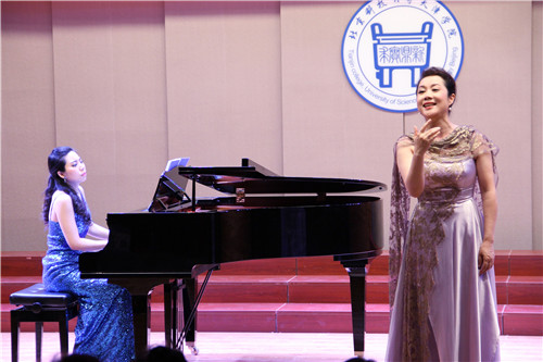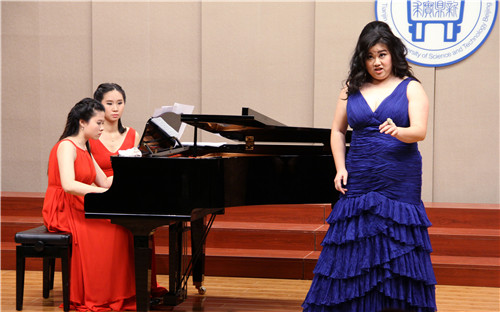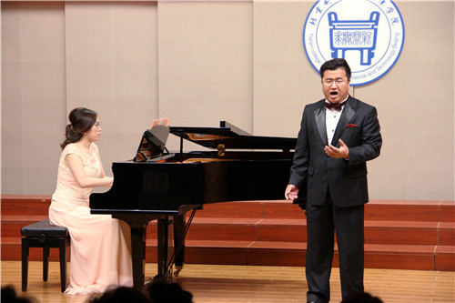 伴随着性吧 学生民乐团一曲悠扬的《台湾追想曲》,演出正式拉开帷幕。性吧 学生组合带来了精彩的男高音独唱《小夜曲》、女高音独唱《诺言》和钢琴独奏《春天的歌》;性吧 教师组合中,高丽老师和王先鹏老师合作的男女声二重唱《祖国,我为你干杯》赢得了全场热烈的掌声;南方学院的教师组合与珠江学院的教师组合也分别献上了钢琴四手联弹《哈巴涅拉舞曲》和男高音独唱《怀念战友》等精彩的节目。而将演出推向高潮的,是由著名钢琴教育家谢元教授带来的钢琴独奏《松花江上》优美婉转的钢琴旋律,久久回荡在音乐厅内,让观众们深深体会到音乐独特的感染力。