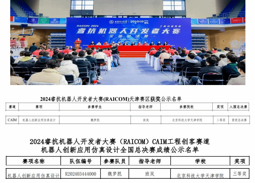 近日,由工业和信息化部人才交流中心主办的2024睿抗机器人开发者大赛(RAICOM)全国总决赛落下帷幕,我校智能制造学院机械工程(机器人应用)专业学生魏梦凯在班岚老师...