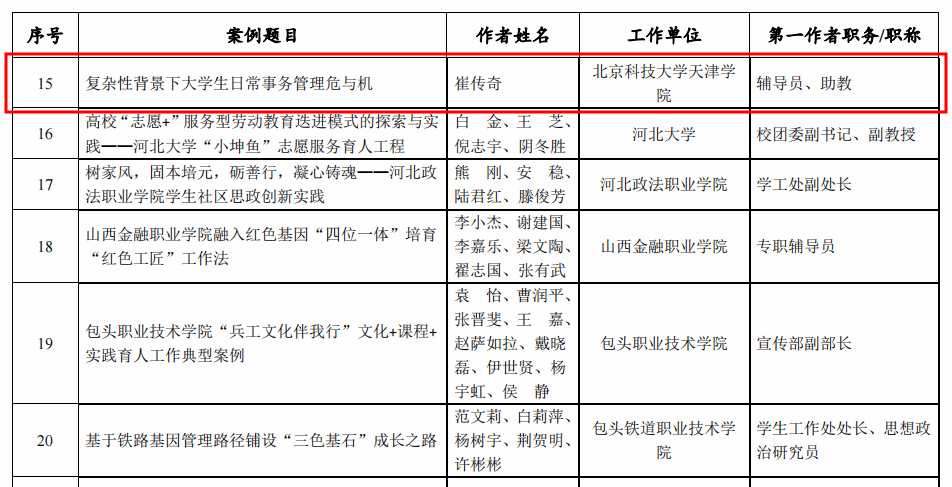 近日,2021年度全国高校思想政治工作优秀案例征集活动结果公布,我院辅导员崔传奇撰写的工作案例《复杂性背景下大学生日常事...