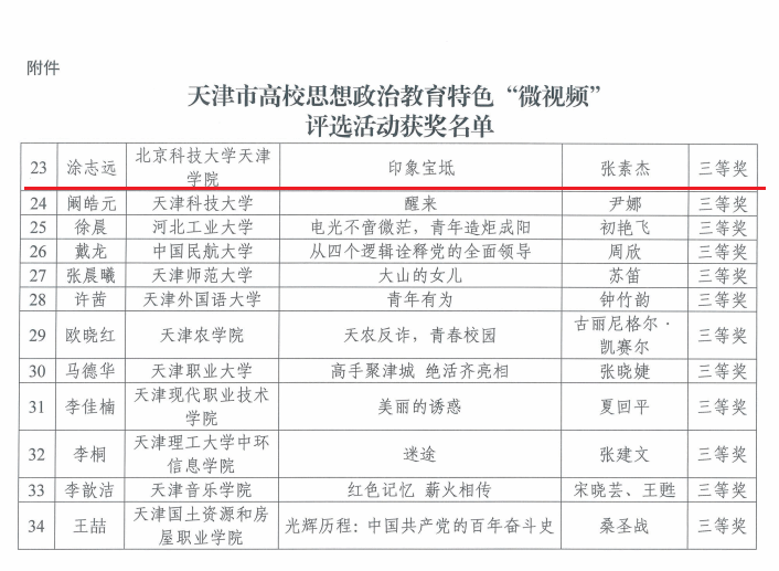 近日,市教育两委公布了2023年天津市高校思想政治教育特色“微视频”评选结果,我院无人机系张素杰团队报送的《印象宝坻》作...